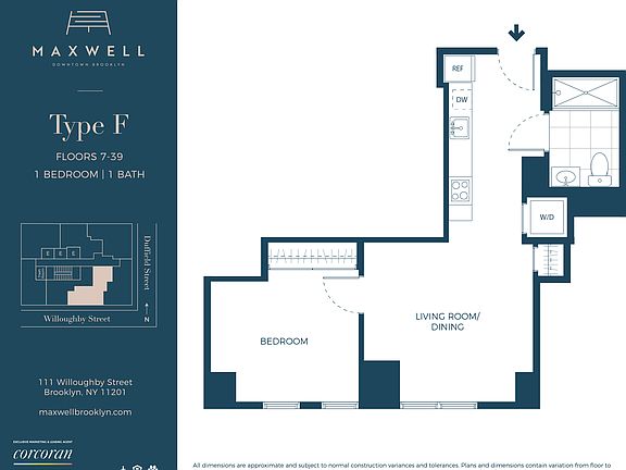 Open layout one bedroom apartment just moments from the A, C, F, 2, 3, B Q & R train lines. Contact a Corcoran New Development Representative today for more information and to schedule a tour.