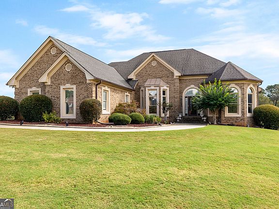 A timeless brick estate in one of Stockbridge's most distinguished enclaves, 111 Wisteria Way balances elegant design with exceptional livability. The main level opens to light-filled gathering spaces beneath soaring ceilings, blending formal and casual living with effortless flow. The chef's kitchen features custom cabinetry, quartz counters, stainless appliances, a double wall oven, and a generous island with seating-ideal for entertaining or quiet mornings alike. The primary suite on the main level offers privacy and scale with a sitting area and a spa-inspired bath featuring dual vanities, a soaking tub, and a separate shower framed in glass. Each additional bedroom is spacious, with refined finishes and abundant natural light. The fully finished terrace level is designed for recreation and relaxation-a complete home theater with tiered seating, game and fitness areas, and direct walk-out access to the backyard. The lower level's stone archways and polished flooring add texture and architectural depth, seamlessly connecting indoor and outdoor living. Outdoors, a resort-style retreat awaits. The gunite pool and spa are surrounded by manicured landscaping, a covered dining patio, and multiple lounging zones that capture sunset views. The expansive upper deck provides a second vantage point over the tranquil yard, bordered by privacy fencing and mature greenery. Thoughtful details continue throughout-trim millwork, arched windows, hardwood floors, and sophisticated lighting underscore the craftsmanship that defines this home. A three-car side-entry garage complements the elegant front elevation and circular drive, all set on a beautifully maintained lot with no HOA restrictions. Conveniently positioned within minutes of Publix at Eagles Landing (1.2 mi), Starbucks (0.9 mi), Pates Creek Elementary (0.8 mi), and I-75 (3 mi), with Piedmont Henry Hospital just 2.5 mi away. 111 Wisteria Way brings together luxury, space, and comfort-crafted for those who appreciate quality without compromise.