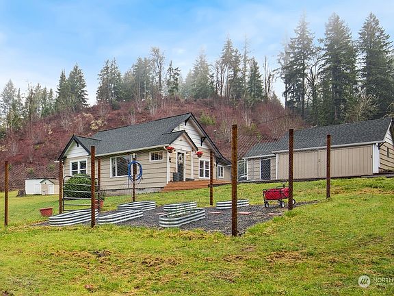 Charming Farmhouse situated on 6.58 acres. Refreshed interior inkeeping with its classic feel. Modern upgrades extend to essential systems, including plumbing, electrical, septic, roof, and foundation, and more. The home has four bedrooms, with two on the main floor and two upstairs, primary on the main. Features an open, country kitchen with a dining area. All windows, except one, have been upgraded to double-pane vinyl, for energy efficiency. An old porch converted to a mudroom, complete with laundry and storage, is conveniently located off the kitchen. Detached two-car garage with a workshop area accompanies the property, while the expansive lot provides fenced garden and firepit with space for a future shop - power already onsite.