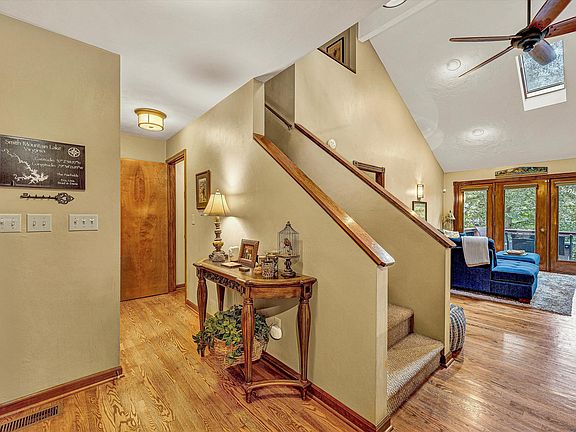 Enjoy lakeside living with this well-appointed property featuring two ensuite bedrooms, a second family room, and a bar area with sink and mini fridge. The two-car garage is being used as a rec room with built-in cabinets, countertop, a second microwave, and its own A/C unit. Additional highlights include a storage room with utility sink, shelving, and second washer/dryer hookups, central vac, low-maintenance yard, and relaxing hot tub. Outdoor living shines with an upper deck with electric retractable awning and a private deep-water dock with boat house and manual awning. Located just off the main channel for easy lake access and minutes from Scruggs Road conveniences--grocery, dining, and more. Furniture, furnishings, and boat are negotiable and offers including any/all are encouraged.