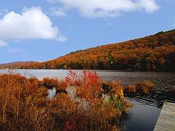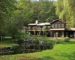 Spacious lakefront home located on tranquil Kittatinny Lake featuring hardwood floors, cathedral ceilings, skylights, fireplace, wood stove, large artist's studio and a detached workshop / garage.