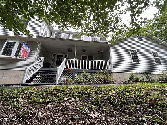 Move right in to this spacious dream house located in the Heart of the Poconos. This well maintained 4 bedroom colonial sits on almost 2 acres that borders the Rail Gap Pocono Creek Nature Preserve. Situated close to shopping, Water Parks and Skiing areas but surrounded by hiking trails and an access to Trout A Wild class waters. Central air and a propane fireplace offer year round comfort. Enjoy those warm evenings sitting outside, either on your front porch or Cambridge brick patio in the back. This home has been lovingly maintained with a new roof in 2023.Spacious bedrooms with l closet space galore. A finished basement provides plenty of space for the whole family. A sports field in the backyard for those home games. Plenty of paved parking with a carport and 2 car garage. A must see!, Beds Description: 2+BED 2nd, Baths: 1 Bath Level 1, Baths: 2 Bath Lev 2, Eating Area: Formal DN Room, Eating Area: Modern KT