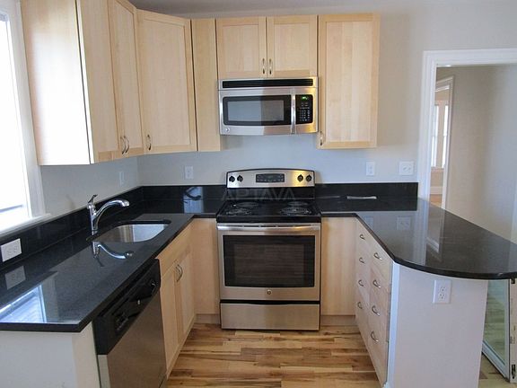 Notable features include hardwood floors, a living room, a modern bath, a patio and storage space. The modern eat-in kitchen features dishwasher, gas range, and stainless steel appliances. Features in-building laundry. Monthly rent includes heat and hot water. Available Now.