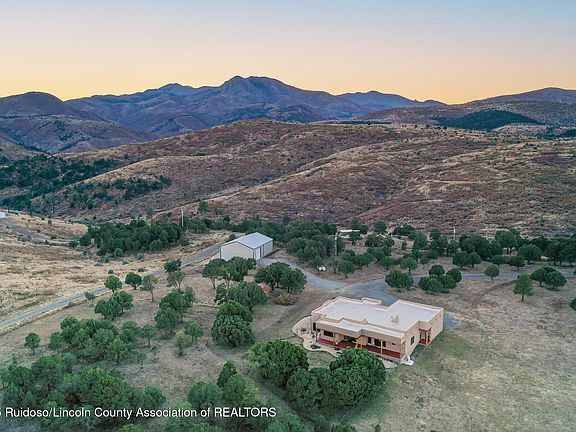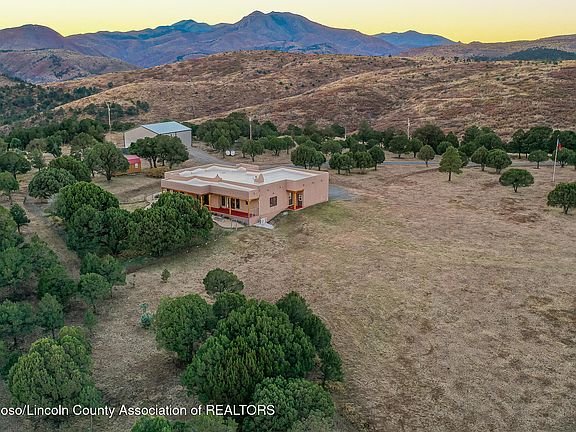 Meticulously maintained Pueblo Style Home on 10 acres with 360 degree mountain views and NEW 40x50 Insulated SHOP! Home boasts tiled flooring throughout with 2 Kiva style fireplaces (1 with new pellet insert); radiant floor heating, gorgeous viga/latilla ceilings, open floorplan flooded with natural light; 3 large bedrooms, each with access to private patios. 2 new Mini-splits for A/C, fenced backyard area, 5 year old roof, ''She-Shed'' with electric, 3 car garage. New pine posts all around home, sealed and painted decks, 3 apple trees, and plenty of room to enjoy privacy! Delightful sun room/office area, and plenty of space in the shop for hobbies, woodworking, auto storage, etc. Have to see in person to truly appreciate all this property has to offer!