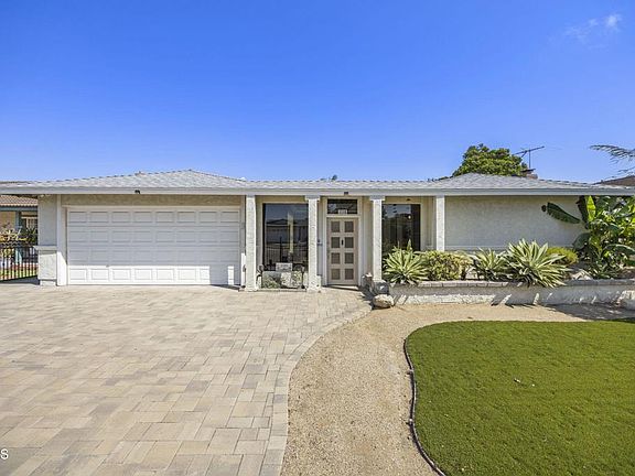 Welcome to your home sweet home in northern Oxnard! Feel the warmth of the day as you walk through the atrium where you can enjoy your morning coffee or tea. This mid century modern home features four spacious bedrooms and two updated bathrooms with a living room that includes recess lighting and a fireplace which enhances the home's ambiance. The remodeled kitchen is a standout, complete with updated appliances and stylish finishes, while the additional bonus room offers versatile space for entertainment or a home office. Recent updates include new flooring throughout, a new roof, and energy-efficient windows, ensuring comfort and style. The property is equipped with air conditioning, ideal for warm summer days. The front and backyard are low-maintenance, showcasing turf and pavers, which also extend to the driveway. Conveniently located near schools and shopping centers, this home is perfect for those seeking both comfort and accessibility.