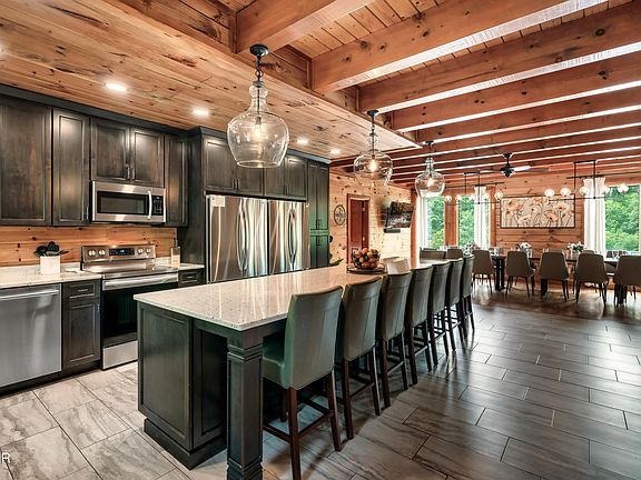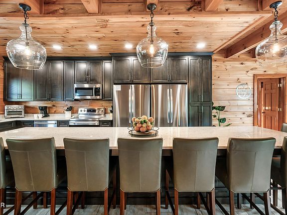 Welcome to your mountain escape! This magnificent 8-bedroom lodge offers 5,100 square feet of luxury living just minutes from Pigeon Forge's most beloved attractions. Perfect for creating lasting memories, this cabin sleeps 26 guests across four thoughtfully designed levels. The main floor welcomes you with an updated gourmet kitchen featuring custom hardwood cabinets, a 14' long Island, granite countertops and an inviting open dining space. Two master suites on this level boast private baths, soaking tubs, and deck access. Upstairs, the entertainment continues with a spacious family room, stone fireplace, and pool table, plus two additional master suites with private balconies. The top floor features two cozy bedrooms, while the lower level houses a theater room, game room with arcade classics, and additional sleeping quarters. Multiple private decks showcase the mountain setting, and a bubbling hot tub offers the perfect spot to unwind after exploring nearby Dollywood, the National Park, or downtown Pigeon Forge. Currently thriving on a successful rental program within a well-managed resort community, this turnkey property combines investment potential with vacation paradise, grossing over $200,000 in both 2024 and 2023. With ample parking for 6 vehicles, this haven in the Smokies checks every box for the discerning investor or family seeking their perfect mountain retreat. The use of an on-site community pool is available for an additional fee.