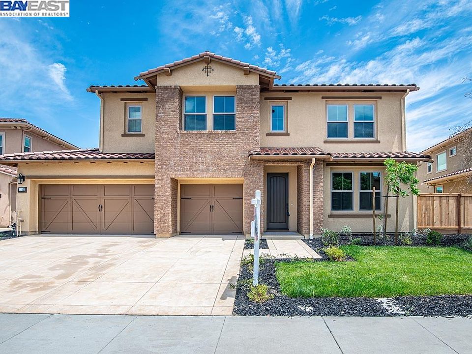 Beautiful new home in Manteca's Oakwood Shores development. This plan 4 model has an incredible floor plan that includes an office, formal dining room, laundry room, downstairs primary suite, & an upstairs loft. The chef's kitchen includes flint gray cabinets, large island, stainless steel appliances including double ovens, large sink, bulter's pantry, and walk-in pantry. The spacious ground level primary suite offers custom tile, sunken tub and separate shower, and a giant walk-in closet. Enjoy sunsets on the covered patio! There is plenty of storage with the 3 car garage. This is a must see. Completion date around middle of May.