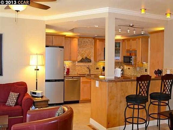 This townhome is move-in ready, a must see! Walk past the Tuscan-like private front patio with flagstone tile into this 2-story townhome with great Walnut Creek location. Front patio has custom retractable shade for entertaining. Entry leads to charming family room, remodeled kitchen, & spacious breakfast nook. Kitchen with granite counters, custom tile back-splash, new cabinetry, built-in gas range/cook-top, breakfast bar & recessed lighting. Formal dining room & step-down living room for entertaining. Beautiful fireplace for a cozy atmosphere & a view of the lovely backyard & flagstone patio. Blooming flowerbeds & lush trees for privacy. Partial bath downstairs with new vanity and lighting. Upstairs find 3 bedrooms, 2 bath. Master bedroom includes spacious sitting area, patio with views of the hills, upgraded lighting/ceiling fan, remodeled bath with double sinks & skylight. Hallway w/ new skylight leads to 2 bedrooms & guest bath with granite counters, custom mirrors and lighting.