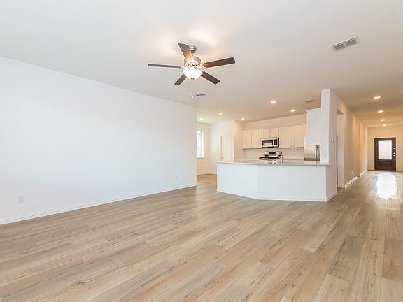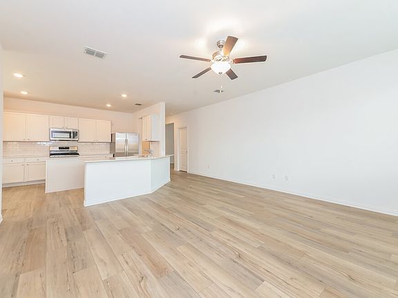 Come tour this new construction rental home in Princeton, TX. This home features four bedrooms, two bathrooms, and a two-car attached garage. There's also a bonus room that would make a great office. The living room has vinyl plank flooring and a lighted ceiling fan. It is open to the kitchen, which is perfect for entertaining. The kitchen is a study in white. There are white cabinets, quartz countertops, and a white subway tile backsplash. You'll also appreciate the stainless steel appliances, kitchen island, and pantry. At the end of the day, head to the primary bedroom to relax. You'll love the large walk-in closet and the en-suite bathroom. The fenced backyard is ready for your pets. Come tour today!