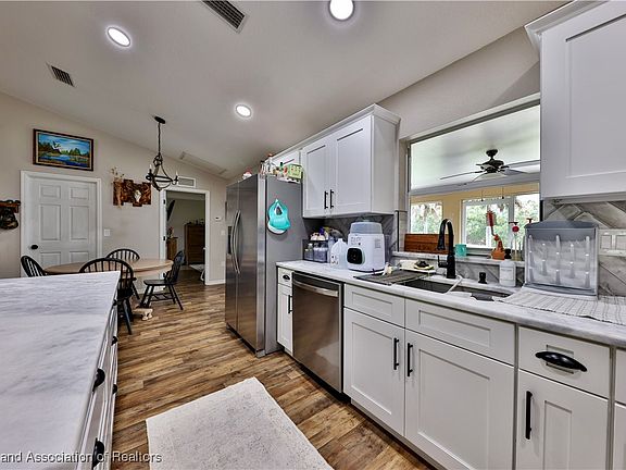 SERENE COUNTRY LIVING! This beautiful 4/2 open concept home has been lovingly remodeled with gorgeous upgrades. The sleek kitchen features bright white soft-close cabinetry, stainless appliances and lovely quartz countertops, all open to the spacious living area, perfect for entertaining! The oversized master bedroom is a quiet retreat including a huge walk-in closet with built ins and an en-suite bath with double vanity, large step-in floor to ceiling tiled shower and a jetted soaking tub fit for a queen! The large fourth bedroom would also make a great office or craft room if desired and the huge indoor laundry room provides great storage space as well. An expansive screened lanai overlooking the protected state land behind the property is a great place to enjoy your morning coffee or relax in the evenings and watch the wildlife. There's also a large shed in the back to store all your tools and toys out of the weather. If you're looking for some peace and quiet this is the one for you, come check it out today!