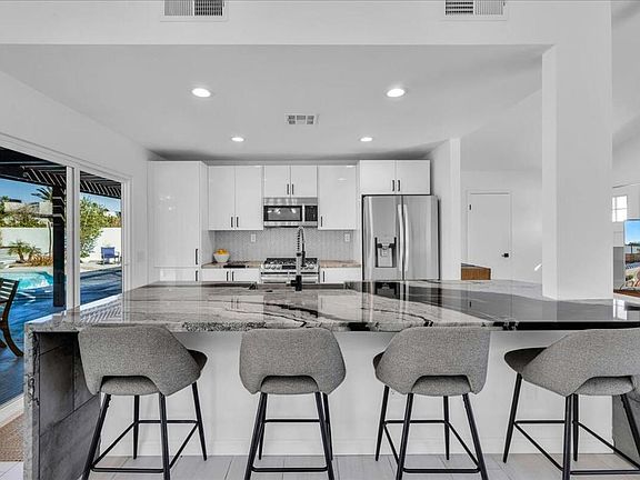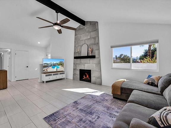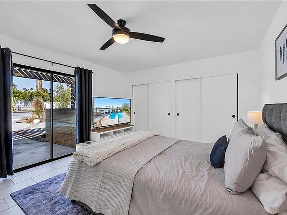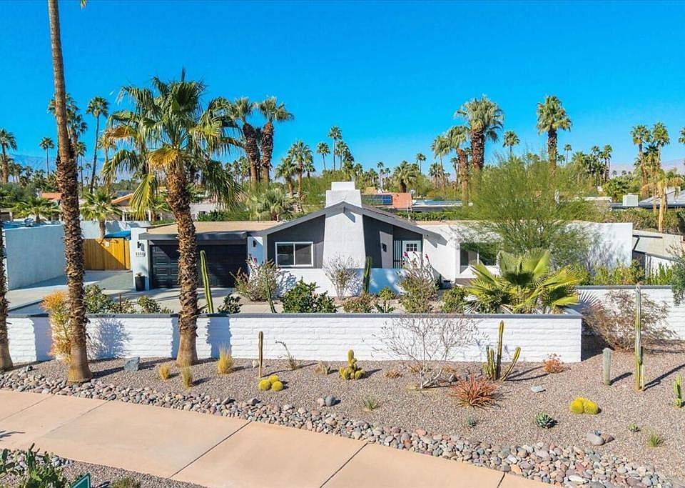 Welcome to your Palm Springs dream home! This stunningly remodeled 3 bedroom, 2 bath residence offers 1,452 sq. ft. of beautifully designed living space, all situated on an expansive lot of over 15,000 sq. ft. Located just minutes from the heart of downtown Palm Springs, you'll enjoy the perfect blend of privacy and convenience with world-class dining, shopping, golf, and entertainment right at your fingertips.From the moment you step inside, you are greeted with an inviting open floor plan, soaring ceilings, and an abundance of natural light that creates a warm and airy atmosphere. The living and dining areas flow seamlessly into the chef's kitchen, making this home ideal for both relaxing and entertaining. The kitchen has been fully reimagined with all-new sleek modern cabinetry, high-end stainless steel appliances, recessed lighting, and elegant finishes. Stunning quartz countertops and a spacious layout make it the perfect place to gather with friends or prepare gourmet meals. Sliding doors from the dining area open directly to the backyard, enhancing the indoor-outdoor lifestyle Palm Springs is known for.Both bathrooms have been completely remodeled to match the elegance of the kitchen, featuring new cabinetry, quartz countertops, and designer touches throughout. Every bedroom is thoughtfully appointed with ceiling fans and plenty of natural light, while recessed (canned) lighting runs throughout the home, creating a modern and bright feel. The home also offers an air-conditioned two-car garage, a rare feature that adds comfort and convenience year-round.Step outside into your private backyard oasisa''meticulously landscaped and designed for ultimate relaxation and entertaining. A large sparkling pool and spa invite you to cool off or unwind, while the soothing water feature adds a tranquil touch. A covered patio provides shade during the warm desert days, and the built-in misting system keeps you comfortable even in the peak of summer. There is ample space for lounging in the sun, entertaining guests, or simply enjoying the serene mountain views.This home truly embodies the essence of desert luxury living, with every detail carefully curated to provide comfort, elegance, and style.Note : Existing Lease is extended to June 30, 2067.