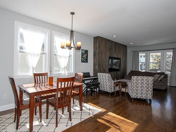 This beautiful craftsmanship turn key 4 BD/2.5BA barely lived in home has been completely redesigned and rebuilt, includes all high-end finishes with the executive in mind. The expansive and welcoming front porch brings you up to the first floor, open floor plan which includes 9ft ceilings, a large sun filled living room, dining room, office/bedroom and half bath. The Eat-in Kitchen includes island, granite countertops, high-end appliances, convection microwave, wine refrigerator and beautiful 42 inch custom lit cabinetry, the mudroom leads out to the composite deck and patio. The second floor features primary bedroom with ensuite bathroom, 2 bedrooms, additional bath, fitted closets and the laundry room. Hardwood floors, custom millwork, beautiful light fixtures. The lower level is complete with a drain tile system, ensures family entertainment and fun. 2.5 car garage and parking pad. Perennial garden/pear tree. Great neighbors! Conveniently located near downtown Forest Park boutiques, restaurants and transportation. You will Not be disappointed.