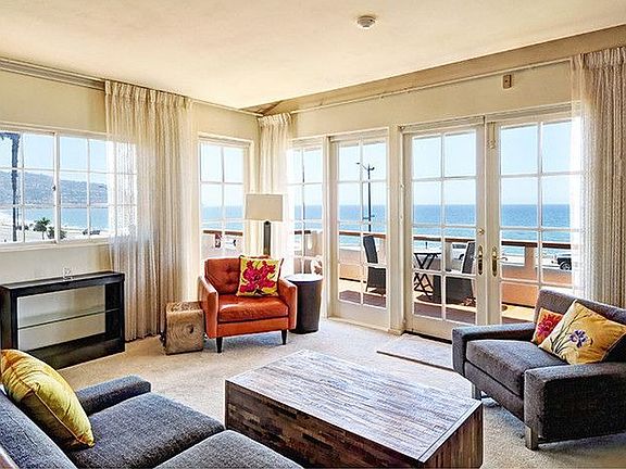 Panoramic ocean and white water views stretching from Palos Verdes to Malibu. Sit back and watch the surfers and dolphins from your couch! With over 2300 square feet of prime ocean front living space, there's plenty of space to entertain your family and guests and enjoy the beach lifestyle. Featuring 4 bedrooms and 3 1/2 baths - the Master Suite and the 2nd Bedroom are on the middle level and offer ocean views and share a patio. The 3rd Bedroom offers access to the rear patio and is located next to the laundry room. The large 4th Bedroom on the lower level has its own bathroom and also makes a great family/media room. The Kitchen features stainless steel appliances and a dumbwaiter to bring up the groceries from the garage. The Living and Dining room are open to the wonderful views and offer a fireplace and wet bar. A private 2-car garage plus storage complete the amenities. Perfect location for walking along the Esplanade, riding your bike along the beach path or just sitting back an
