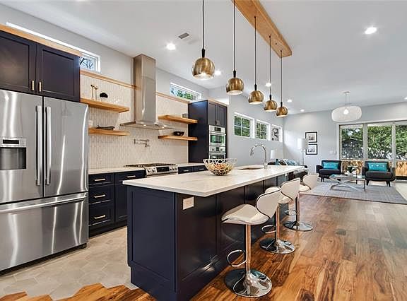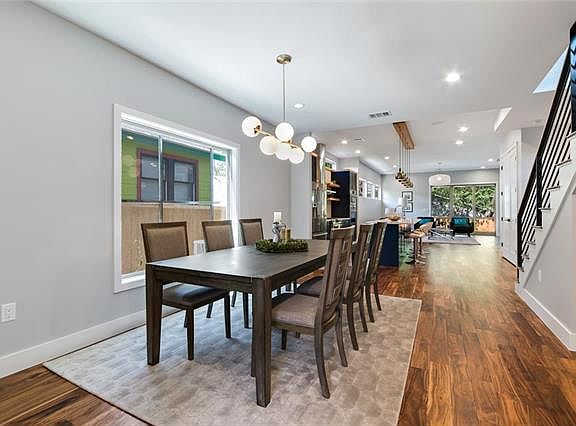 Treasure this Travis Heights home built for the modern age with an eye for detail. The classic craftsman style exterior, neatly dressed in modern and retro touches throughout, blends fun and tranquility for the Austin lifestyle. This home offers smart features to effortlessly support your everyday needs, efficient resource usage and dynamic living space configurations as your needs change over time. Unique color hues, textures and lighting create a peaceful home environment that easily transitions into a lively party atmosphere. Comfortably move about your gourmet kitchen, relax in your master oasis and enjoy your ideal yard with large trees and greenery. Five bedrooms, four full baths, open floor plan and increasingly rare two car garage. Minutes to park, trails and SOCO entertainment!