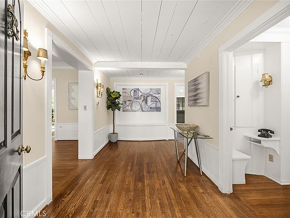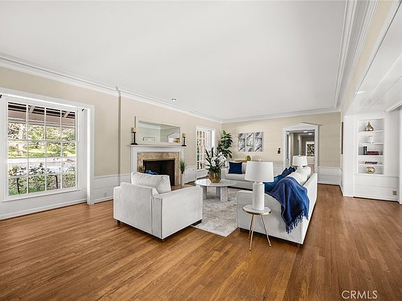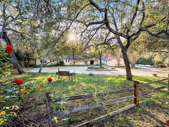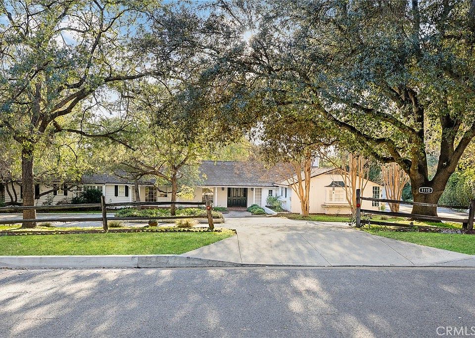 White Oaks — a gracious Upper Rancho estate set on a nearly 1.43-acre lot, This finely crafted single-level residence showcases nearly 5,000 square feet of timeless design and quality construction. The home features 5 bedrooms and 4 bathrooms, with elegant formal living and dining rooms, rich architectural details, hardwood floors, built-in bookcases, and four fireplaces throughout. A spacious family room with expansive windows overlooks the spectacular south-facing lawn, creating a seamless indoor-outdoor connection. The large kitchen opens to a charming patio with an outdoor fireplace, ideal for entertaining. The primary suite offers dressing rooms and a private study, while additional bedrooms provide privacy with adjacent baths. A wood-paneled den with fireplace and bar, generous laundry room, walk-in closets, Dutch doors, and both attached and detached garages add to the home’s thoughtful layout. The expansive, park-like grounds include a large rose garden, shaded brick patio, badminton court, citrus trees, and vast lawn areas. The property offers exceptional privacy and ample space to accommodate a pool, pool house, tennis court, or other amenities. A rare opportunity to own a landmark estate in one of Arcadia’s most desirable neighborhoods.
