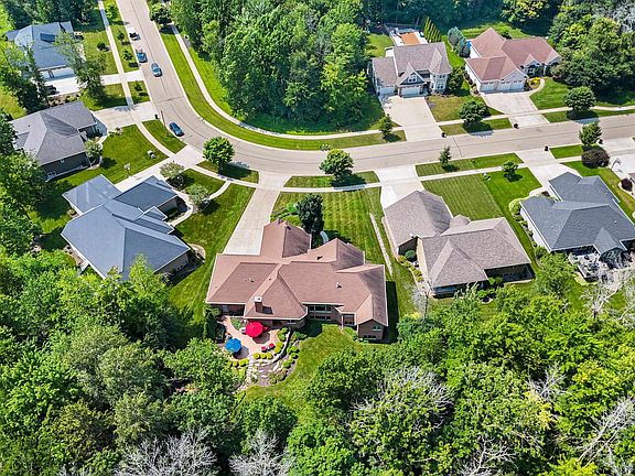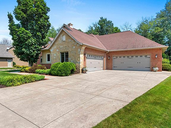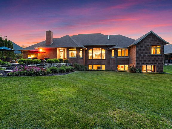 Custom built w/timeless elegance, this all-brick/stone exposed ranch offers 4,654 sq ft of high-end living space--plus a 1,539(apx) sq ft dream garage that is sure to impress. Nestled in the prestigious Howard neighborhood, this exceptional home tucked along a secluded woodland edge features an extensive concrete patio, rock path to a fire pit retreat. The heart of the home is a chef's kitchen w/Dacor appl & lg walk-in pantry w/sink & cabinetry. Main level highlights-Hearth rm hosts wd-burning fp, private office w/French Drs & built-ins, lg laundry & a luxurious primary suite w/tray ceiling, sitting area, spa-like bath w/lg tile shower, dual vanities & whirlpl tub. Finely finished LL hosts family rm w/walk-up bar, theater rm, 4th bdrm, full bath & secured fitness rm w/endless pool (neg).
