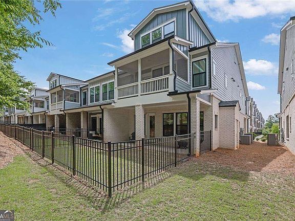 This beautiful corner lot is only 5 minutes from Canton street and downtown Roswell! It includes 3 bedrooms on the 2nd floor, 2 full bathrooms, 2 half baths, and the loft space is the entire 3rd floor, that can be utilized as an additional bedroom, a gym, an entertainment space, an upstairs office, the possibilities are endless with this top floor boasting an estimated 900 square feet with an additional area for storage on this top level. The main level features an open-concept layout with 10-foot ceilings, connecting the kitchen, dining, and living areas. The kitchen is well-equipped with a gas cooktop, stacked cabinetry (special feature), an oversized island, and curated design finishes that balance style and function. Upstairs, the owner's suite includes a sitting area and screened-in porch, with a bathroom offering a soaking tub, frameless shower, double vanity, and walk-in closet. Two additional bedrooms and a shared full bath with double sinks provide ample space for guests or family members. The outdoor covered patio and fenced yard offer additional living space, and the surrounding neighborhood is quiet and gated, with tree-lined streets and shared amenities including a swimming pool, cabana, and dog park. The location provides convenient access to downtown Roswell, Avalon, Alpharetta, and GA 400. Lastly it's in a highly rated school area which is great if you have children and useful if you ever need to sell the home in the future.