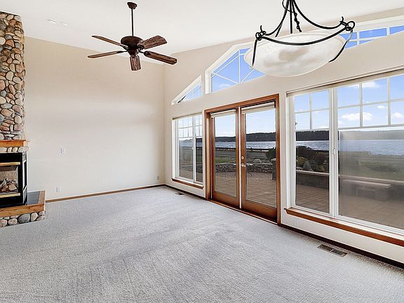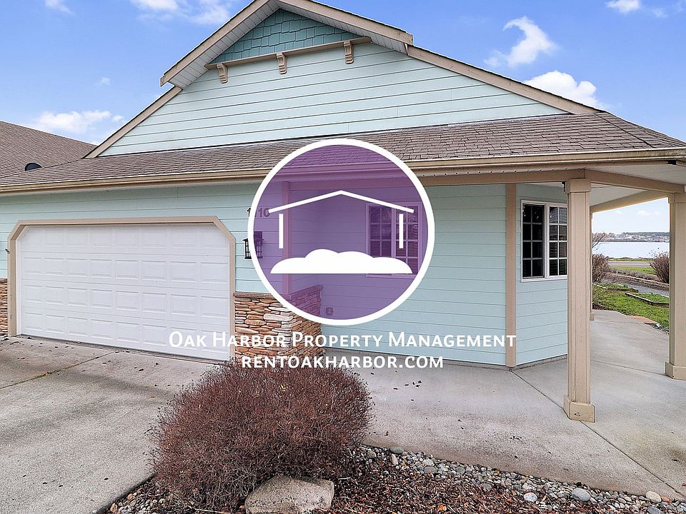 Enjoy endless Penn Cove views from this one story 2 bedroom 2 bathroom home with large office. Open concept living room features propane fireplace with mantle and french doors leading to breathtaking patio views. Living and dining rooms adjoin oversized kitchen ideal for cooking enthusiasts complete with eat in bar and walk-in pantry. Primary bedroom with five piece en suite bathroom highlights walk-in shower, jetted soaking tub, and dual vanities. Large laundry/mudroom with ample storage. Washer, dryer, and microwave included but not maintained. 192sf lighted attic storage. Two car garage. Monroe Landing boat launch nearby. 500ft private community beach. Landscaping included with monthly rent. Ideal Pacific Northwest recreational access and close proximity to NAS Whidbey.