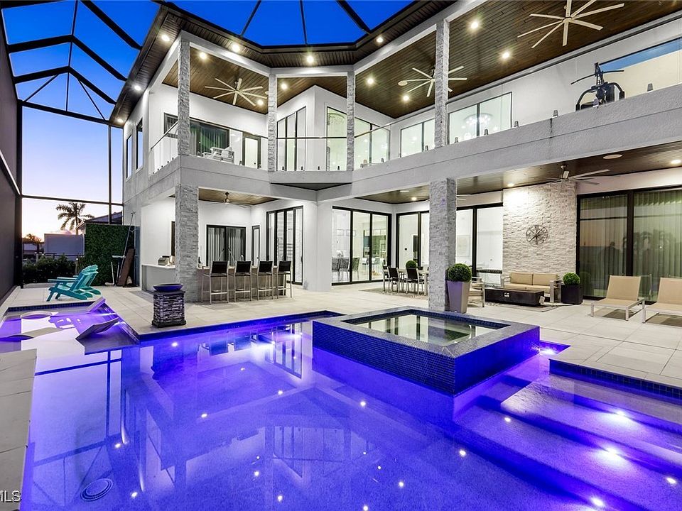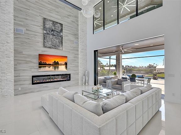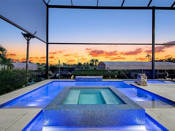 Direct Gulf Access Newer Home with Riverfront Views in the Yacht Club. Walking distance to Cape Coral’s only beach! Experience luxury coastal living at its finest in this newer custom home with breathtaking riverfront views and Direct Sailboat Gulf Access located in the heart of the prestigious Yacht Club area—modern construction featuring 4,516 SF of extraordinary detail and design. 4 Bedrooms, 4 Full Bathrooms, and 3 Car Garage with modern glass garage doors. No expense spared, loaded with upgrades, superior craftsmanship, timeless elegance, and the ultimate Florida Boating Lifestyle. Step through the grand double doors into a dramatic, open living area with two-story ceilings, floor-to-ceiling windows, and pocketing glass doors that create a seamless transition between indoor and outdoor living spaces. Living Room with 2-story ceilings and a feature wall featuring an oversized electric fireplace creates an awe-inspiring space to relax or entertain. Gourmet kitchen features Viking appliances, a side-by-side oversized refrigerator & wine cooler, a built-in Miele espresso maker, and designer cabinetry. Entertain in style with double waterfall-edge islands offering abundant seating and storage. A floating staircase framed by a stacked stone wall and a glass elevator connects the two levels. The 1st-floor master suite offers pool access and water views, a spa-inspired bath featuring floating vanities, a designer soaking tub set beneath a chandelier, and a walk-through shower. Each guest suite features its own en-suite bath, walk-in closet, and 11 to 13-foot ceilings. With accommodations like these, your guests may never want to leave! Every detail has been thoughtfully designed, including imported tile floors throughout, level 5 drywall, designer lighting, tile-clad feature walls, and surround sound indoors and out. Upstairs, the balcony overlooks the Yacht Club and Caloosahatchee River, providing endless water views and stunning sunsets. Step outside to your private resort oasis featuring a heated pool with an integrated infinity-edge spa, southern exposure for maximum sunshine, and an oversized under-truss lanai with 1,785 square feet of outdoor living space. Entertain poolside with the fully stocked outdoor kitchen and wraparound bar, featuring seating for 8, wood ceilings, a sound system, a cabana-style lounge area with a fireplace and TV, and an outdoor shower. Sunbathe waterside in the sun shelf! Boaters: FAST open-water access in minutes, an 80-foot composite dock with a captain’s walk, a high-capacity boat lift, power & water, and a jet ski lift. BEACH BOATING AND LUXURY. Located moments from NEW Bimini Square, The Cove, Slipaway, and the Yacht Club’s revitalized marina and expanded beach, this residence offers unmatched proximity to Cape Coral’s most exciting waterfront dining, entertainment, and boating destinations, with more on the way! Hurricane Impact Windows & Doors - No water intrusion or significant damage during any storms.