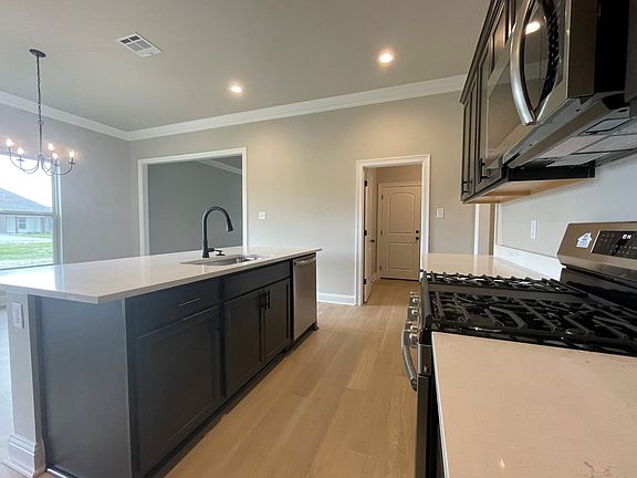 This FRAZIER V A has an open floor plan with upgraded quartz counters throughout & a stainless appliance package with a gas range. Special plan feature include 3 bedrooms, 2 full bathrooms, kitchen island, large walk-in closet, garden tub & separate shower in primary bedroom, vinyl plank flooring in living room & all wet areas, smart connect Wi-Fi thermostat, framed mirrors in all bathrooms, crown molding & recessed lighting, tankless gas water heater & so much more!