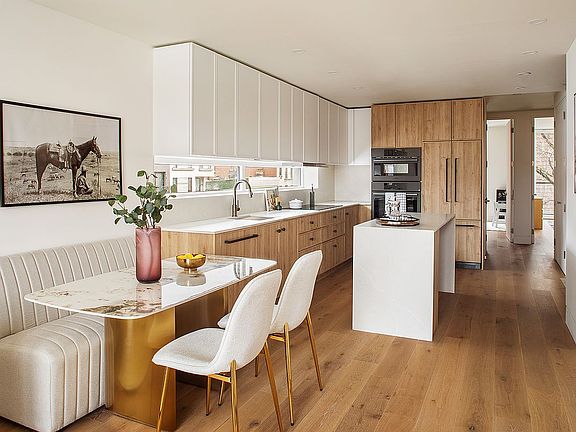 Step directly from your private keyed elevator into Residence PH, where sunlight floods an expansive open-concept layout designed for both everyday living and elegant entertaining. The custom two-tone oak kitchen serves as the true heart of the home — a striking yet functional centerpiece featuring sleek quartz countertops, warm wood textures, and a full suite of fully-integrated Bosch and Fisher & Paykel appliances, including a built-in wine fridge. Completed by a fully-vented kitchen hood and linear designer kitchen window bringing natural exposure to the resident's culinary experience. Every finish has been intentionally selected to create a sense of flow and cohesion, from the wide-plank white oak flooring that spans the home to the soft, layered lighting that highlights architectural details and adds depth to the space.