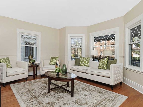 Gorgeous, pristeen America Four Square home located in the Ridge Historic District. The light-filled, 5 bedroom home is thoughtfully renovated to combine a modern kitchen and bathrooms with original vintage features including bay windows, leaded glass, carved oak staircases, 9' ceilings and hardwood floors throughout. The open living room features a cozy woodburning fireplace. There is an inviting separate dining room that opens to the deck that overlooks lovely landscaped gardens, yard and patio. You will enjoy preparing meals in the beautifully renovated kitchen, and there is the convenience of a first floor powder room. The second floor features four bedrooms and a renovated full bathroom. The versatile top floor includes a large 2nd primary bedroom or playroom/recreation room and renovated bathroom, plus an adjacent office area. And just waiting for your ideas is the pristeen, full basement with high ceilings, and enough room for an expansive recreation room, office and playroom. The roof and mechanicals have been replaced, including HVAC, electrical, plumbing, and the home has thermal windows. This lovely home offers the ease of a side driveway directly off Maple.