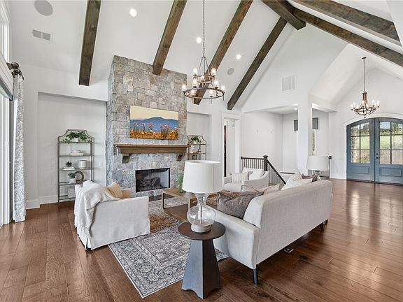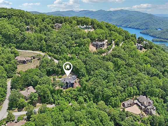The main level welcomes you with an open-concept design, anchored by a grand stone fireplace and expansive windows that frame the awe-inspiring Blue Ridge vistas. The chef’s kitchen features high-end appliances, custom cabinetry, and a generous island perfect for entertaining. A cozy den just off the main living area provides a flexible space for a home office or library.