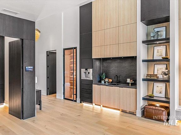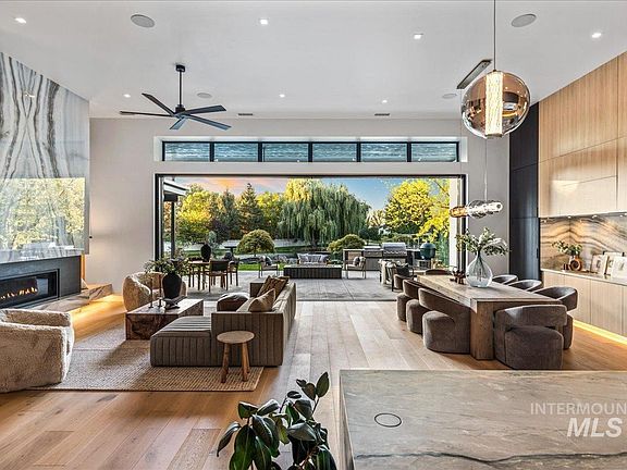 “The Legend” Urban Design & Build's 2025 Parade home, is a breathtaking architectural masterpiece that redefines modern luxury. Perched on one of Eagle’s most coveted waterfront lots with tranquil pond and nature views, this showpiece seamlessly blends elegance, innovation, and livability. A dramatic 30-foot wall of glass vanishes into the walls, creating a seamless indoor-outdoor flow and showcasing the art of open-concept living. A full Crestron home automation system commands lighting, audio, motorized shades, security, and climate with effortless precision. The spa-inspired primary suite offers a sanctuary of relaxation with a striking soaking tub, custom sauna, and boutique-style closet with jewelry drawers. Also featuring a fully independent guest quarters — complete with its own entrance, garage, kitchen, living room, luxurious bath, and patio — provides exceptional versatility for extended stays or multigenerational living. Every detail in the home has been curated to perfection, from designer finishes and statement architecture to the sophisticated integration of technology and nature. For the discerning buyer who accepts nothing less than extraordinary, this is more than a home — it’s a lifestyle without compromise!