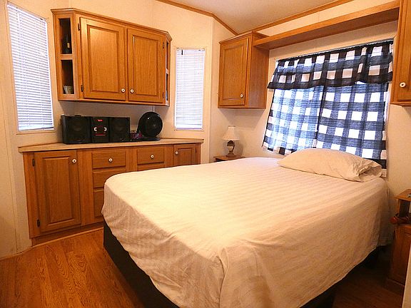 Come check out this 1 bed 1.5 bath golf course park model home located at 1011 Par Lane in the pet section of Palm Creek Resort. This home offers a spacious room addition which provides an extra living room, half bath, and laundry set up. The primary bedroom includes a full size bed and plenty of built in storage drawers. This home comes fully furnished with everything you need including dishware, furniture, and a washer/dryer. Also featured is a covered front deck with patio furniture where you can relax and overlook the golf course. Contact the sales office today to schedule your private viewing of the wonderful home today!