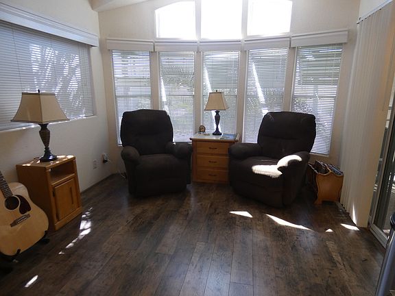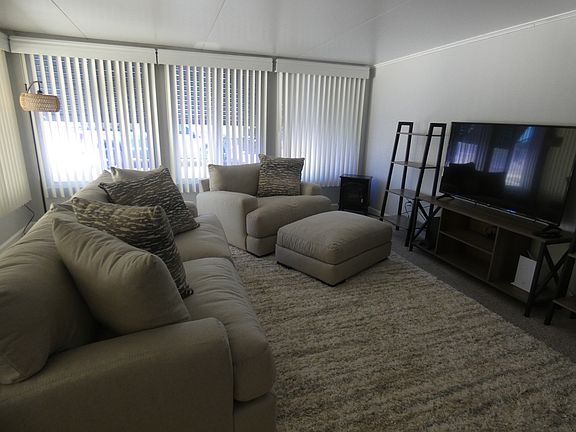 Fresh updates to this 1 bedroom 1 bathroom fully furnished home in the pet section located at 923 Emerald Lane. Discover the perfect blend of comfort and community with a brokered home at Palm Creek Resort and Residences. Whether you're seeking an active lifestyle, a peaceful retreat, or a mix of both, our resort offers premium amenities, social events, and a warm, welcoming atmosphere in the heart of Arizona s sun-soaked landscape. Home features newly remodeled room addition with fresh paint, new rug, sofa, chair, ottoman, shelving, tv console and desk, bringing the home to 640 sq ft. In 2022 home was updated with new Microwave, laminate flooring, sink hardware, high rise toilet, leveled, roof resealed, and trim painted. Queen Primary bedroom has great storage, bath has shower/tub combo, and dining room boasts storage as well. Guess what? After you buy your home, you re not just a homeowner you can also be a landlord! Yep, you can sublease it and make your home work for you!