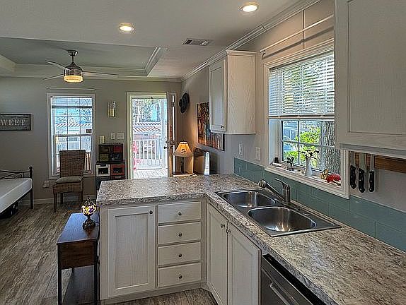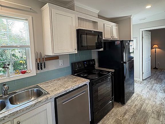 This beautiful mobile home on Crescent Lake is like brand new, only 6 years old, with raised ceilings and full sized cupboards and appliances. Light comes in from all 4 sides! Central air/heat, ceiling fans, 13x8 deck with a view of beautiful Crescent Lake! This is a senior 55+ private community with no HOA!. Application fee, approval and lot rent of $505/month in Crescent Lake Waterfront Community, which includes a greenhouse, fire pit, waterfront, boat slips available to lease, two docks with large gazebo and fish cleaning station, trash and lawn service, and more!