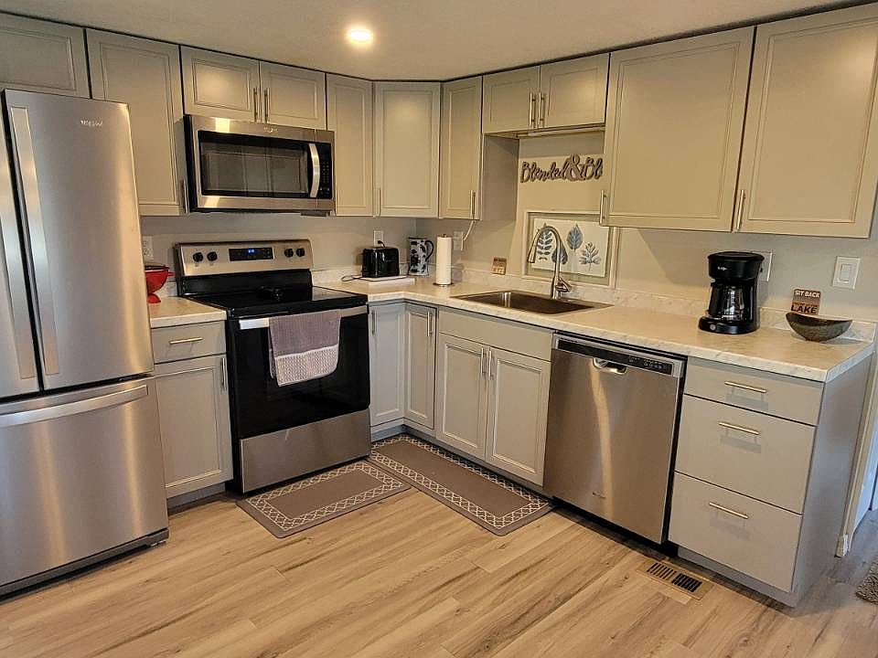 Home Features: 1 Bedroom, 1 Bath (Optional 2nd bedroom within the great room) Fully updated open-concept layout Newer kitchen with stainless steel appliances. New laminate flooring throughout. Remodeled bathroom with tub/shower combo. Tastefully decorated and fully equipped-perfect for the 2026 snowbird season. Relaxing screened porch with storage. Additional Highlights: NEW central air with heating 8x10 storage shed Just steps from the lake and docks! Community Amenities: Firepit & social areas, Fishing and boat docks, Greenhouse, Trash service included. Locked mailboxes & Lawn care provided with site rent. Off-street parking for one vehicle. Important Details: Pets permitted (with restrictions). Resident application required. NO property taxes or HOA fees Privately owned property Don't miss this perfect retreat for the 2025 snowbird season!