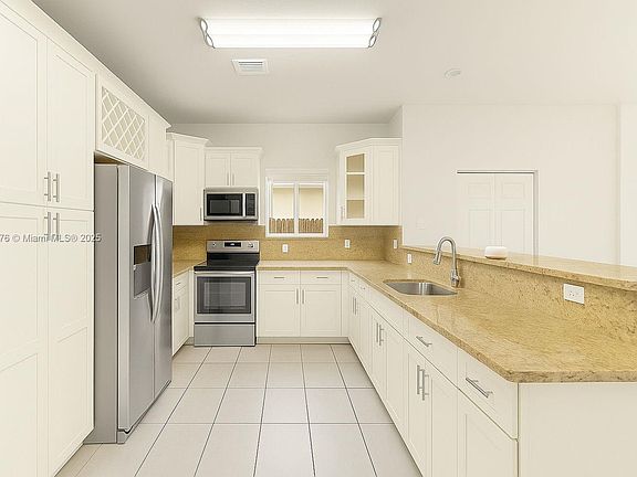 The upgraded kitchen features granite countertops, quality appliances, and ample cabinetry. Upstairs, all bedrooms are generously sized, offering comfort and privacy. The home is equipped with hurricane impact windows and doors for added safety and efficiency.