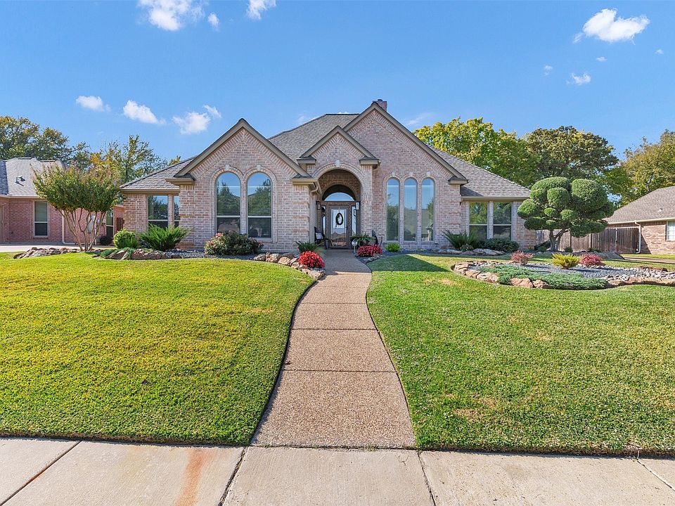 An exceptional ONE STORY HOME on a quiet, tree-lined street within a well-established neighborhood in Keller. The home is framed by mature trees and lush, professionally maintained landscaping, creating a serene and private setting.