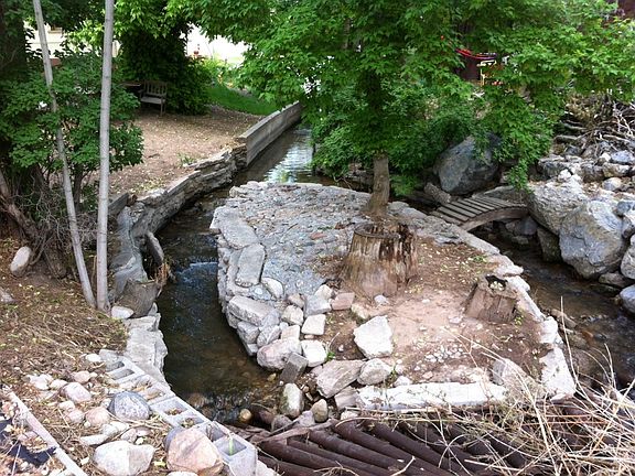 this split level design home. This unit has a front door with bridge on the creek side and side entry on driveway side.