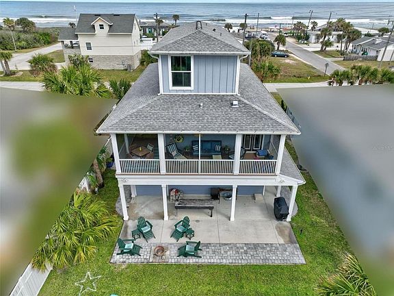 Nestled in the charming coastal town of Flagler Beach, this spectacular 3-story OCEAN VIEW beach house invites you to experience the epitome of coastal living. With 3 bedrooms, 2 and 1/2 baths this home offers a unique blend of luxury, comfort, and panoramic views of the ocean. The top floor is dedicated to the master suite, offering a haven of tranquility. Wake up to the sound of the ocean, have your morning coffee on the private ocean front porch and unwind in the en-suite bathroom. The primary suite offers LVP flooring, ceiling fan, and walk in closet. Master bath with beautiful tiled surround walk in shower and his and her sinks and a separate laundry closet. Second floor was designed to maximize the expansive ocean views and accessibility with both front deck and back screened deck for entertaining. Indulge your culinary passions in this extraordinary gourmet kitchen meticulously designed and equipped with a 6-burner gas stove, double wall ovens, a charming farmer's sink, kitchen island, wood cabinetry with under cabinet lighting and a generously sized walk-in pantry with custom shelving. Livingroom, powder room and home office complete the 2nd floor living space. The thoughtfully deigned first floor is a guest paradise with outdoor shower and laundry easily accessible when you come back from a day at the beach. Two bedrooms each with their own paver patio, walk in closets and guest bath, large laundry room, LVP flooring and storage room for beach chairs, surf boards and more complete the first floor. 150 foot deep alley way lot offer lots of options to expand this back yard living space with paver patio is a blank slate waiting for your ultimate back yard designs, plenty of room for a pool, separate stand along garage, gardens what ever you can imagine to make this space your own. Convenient access to the beach just steps away, allowing you to enjoy the sand and surf whenever you desire. Witness breathtaking sunsets and sunrises right from the comfort of your own home.Built in 2018 this home offers a whole house water filtration, 2 laundry rooms, instant hot water heater, buried propane tank servicing your cook top, hot water heater and piped in for your grilling. There is an elevator shaft pre wired and in place for a future elevator. Smooth finished interior walls, custom trim through out the house, Irrigation on well, Hardy board siding, outdoor shower with hot and cold. Storage room, paver driveway. Embrace the laid-back lifestyle of Flagler Beach, known for its friendly community, eclectic shops, and vibrant local culture. Explore the nearby parks, seafood restaurants, and charming boutiques.This beach house is not just a home; it's a coastal sanctuary designed to maximize your connection to the natural beauty that surrounds it. Whether you're seeking a peaceful retreat or a vibrant entertaining space, this Flagler Beach residence offers the best of both worlds. Schedule your private tour now and experience the epitome of oceanfront living.