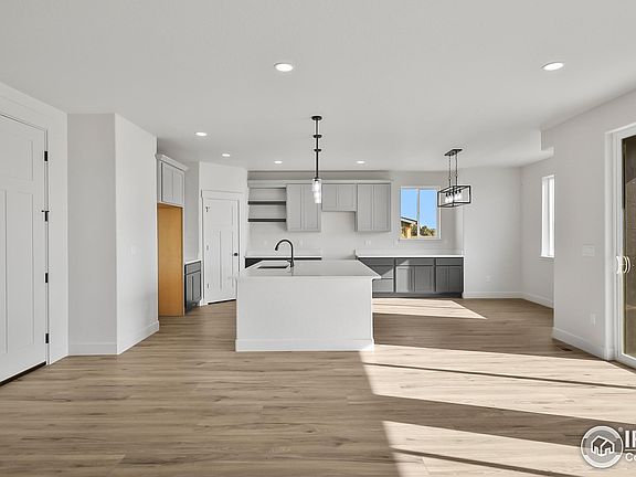 NEW Interior pictures added! Rare opportunity to purchase a NEW Home without the wait! Welcome to this semi-custom-built home featuring a minimalist design, open floor plan & bold colors. Walk through your covered front porch into an expansive 20ft tall foyer to a spacious living room w/LVP flooring & that opens into your gourmet kitchen w/soft-close cabinets, GE Cafe Appliances & a huge 4x8 ft Quartz Island. Sliding doors lead to your partially covered patio w/recessed lighting & easy access to the private open spaces. Powder room on main level for added convenience.Two car atttached garage plus 16x8 workshop area. Landscaped front yard w/sprinkler system to keep your yard looking beautiful & welcoming. The upper level features 2 large bedrooms w/built-in shelving, 3/4 bathroom & conveniently located laundry room. The crown jewel primary features a trey ceiling, walk-in closet w/built-in shelving & one-of-a-kind wet room shower/bathtub with floor-to-ceiling tile & separate water closet. The insulated basement offers opportunity for expansion with 9ft ceilings, rough-in plumbing for additional bathroom or wet-bar & two egress windows. Call to see this beautiful custom home today! Access to walking paths, park, pond & fire pits provided exclusively for residents of The Bijou.