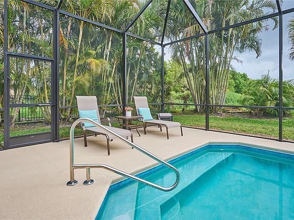 Located in the gated community of South Lakes. Lushly landscaped with a serene private screened-in 2019 heated saltwater pool. Featuring