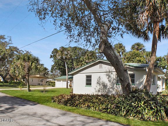 Come and see this multi generation owned home on the highly desirable riverside dr. 3 bedrooms with 1 1/2 bath, the main bathroom has tub and shower with the half bath in the laundry has a closet stool for convenience. Large beautiful CORNER lot with plenty of palm trees and excellent grass. The concrete block home is adorned with a steel roof and detached oversized 2 car garage that has electrical panel and water lines, could be made into a suite. The home sits on Riverside drive and is a golf cart drive down the scenic drive all the way to downtown New Smyrna Beach or over the North Causeway to Flagler avenue and the ocean!!! Nothing but beauty everywhere you look and close to the public boat launch and Edgewater riverside park.
