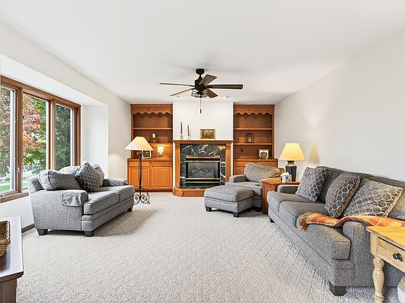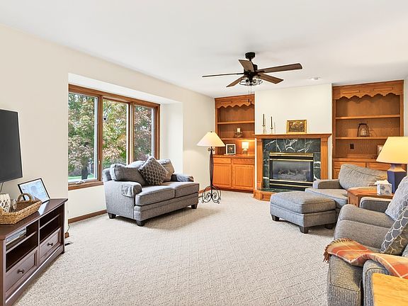 Cozy fireplaceFormal dining roomFinished walkout lower levelFull kitchenMature flowering treesLarge bay windowsHardwood floors