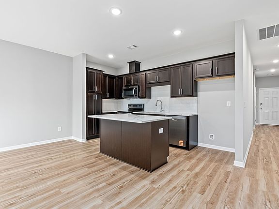 **Seller offering $5,000 in FLEX cash** Welcome to this stunning home in The Woods community, where comfort meets convenience. Step into a beautifully designed space featuring a modern kitchen, three spacious bedrooms, and two full bathrooms. The split floor plan offers added privacy, with the secondary bedrooms situated at the front of the home. The expansive primary suite, complete with an en-suite bathroom, is ideally located just off the living room, creating a perfect retreat. Enjoy seamless indoor-outdoor living with a generous backyard, ideal for entertaining. Whether it's hosting gatherings on the patio or enjoying quiet evenings under the stars, this space is ready for it all.
