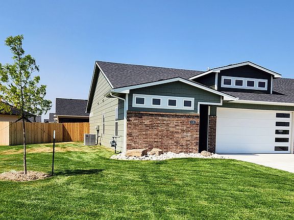 Brand new twin home in Goddard. 3 BR 2 Bath with open floorplan. 1,465 sq ft living space! Large living room/great room. Zero step entry with built in storm shelter in garage for peace of mind! Large kitchen with pantry, eating bar and lots of cabinet space. Granite countertops, stainless steel appliances, and luxury finishes throughout! Vinyl plank flooring in entire space - clean and worry free! Large walk-in closet with built in shelves and cubbies in Primary Bedroom. Primary bedroom also has private bathroom separated by barn-style door. Lots of large windows and covered patio. Privacy fence in back yard with beautiful landscape and sod. Community pool and playground coming soon and direct sidewalk access to Prairie Sunset Trail that connects to frisbee golf park, splash park, downtown, etc.!! Non smoking. Tenant pays gas, electric, water, trash and internet. Owner provides lawn mowing/fertilization. Dogs under 40 lbs are additional $50 per month, per dog. Dogs over 40 lbs are additional $75 per month, per dog. Limit 2 dogs. No cats