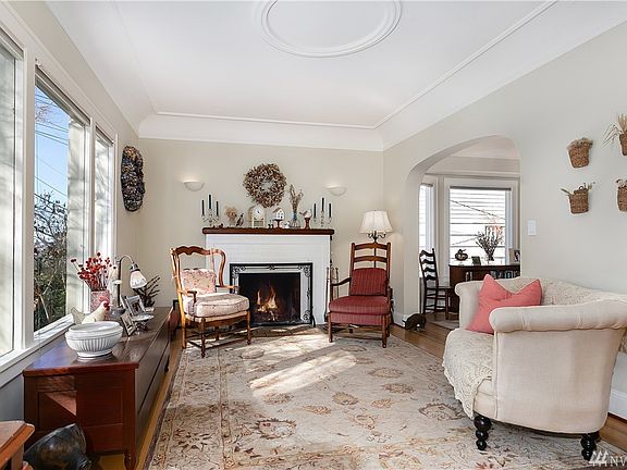 Charming, light filled QA bungalow. Rich hardwoods, elegant stucco, mahogany, coved ceilings, original light fixtures+glass knobs. Excellent floor plan. 2 BR+retro kitchen/bath. Appliances remain. Enjoy multi-level deck. Landscaped, private/fenced back yard has new retaining walls along north property lines. Sprinkler system in front yard+rear yard is 4 sprinkler zone-ready. Full, day-lit lower level has great ceiling height--perfect for further expansion. 2015 furnace. Garage+tandem parking.