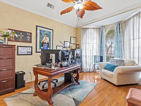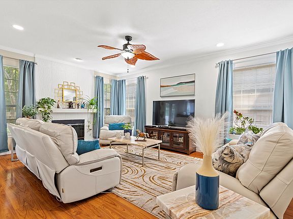 Cozy fireplaceVersatile loftDedicated officeTile floorsCovered patioFormal diningModern kitchen