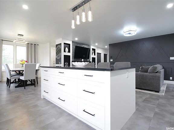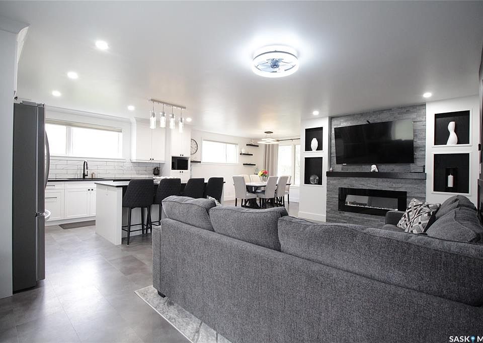 Welcome to this BEAUTIFULLY RENOVATED home where MODERN style meets everyday COMFORT! Step inside to find a stunning NEW KITCHEN featuring crisp white cabinetry, a STYLISH tile backsplash, sleek black QUARTZ countertops, and a spacious eat-at ISLAND—perfect for family gatherings or entertaining. The BRIGHT and airy dining area is surrounded by windows that fill the space with NATURAL LIGHT and provide convenient access to the large front entry. The INVITING living room features a cozy electric FIREPLACE as its focal point and an eye-catching ACCENT WALL that complements the contemporary gray interior doors. NEW flooring, trim, and baseboards throughout the main level enhance the home’s fresh, modern appeal. This FAMILY-FRIENDLY property offers FIVE spacious bedrooms, including THREE on the main level, and TWO updated bathrooms. The fully finished BASEMENT has also been recently renovated, providing additional living space and versatility for your family’s needs. Set on a FENCED double lot, the outdoor space features mature trees, a patio with firepit, and a newly built deck with privacy panel—ideal for relaxing or entertaining outdoors. A detached GARAGE with an attached shed adds even more CONVENIENCE and storage options.Call today to view!