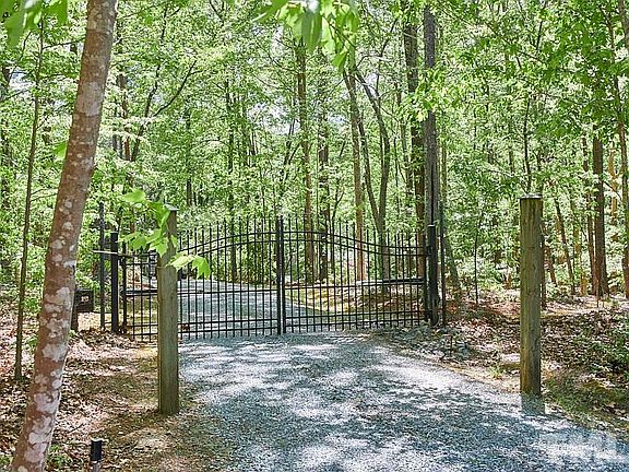 5 acre Oasis! Gated entry opens to brilliantly updated country home amid riotously colorful landscaping. Footpaths wend through the 5 fenced acres of rolling terrain within mature oaks, hickory and pine. Inside, abundant natural light dapples heart pine flooring and multiple artful built-ins by craftsman owner. Separate art studio & cavernous 3-bay garage & workshop. Tranquil pond keeps birds and other pollinators happy! Minutes from Jordan Lake's beaches, hiking, camping, boating & fishing.