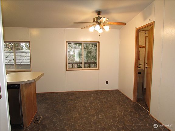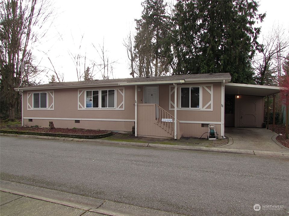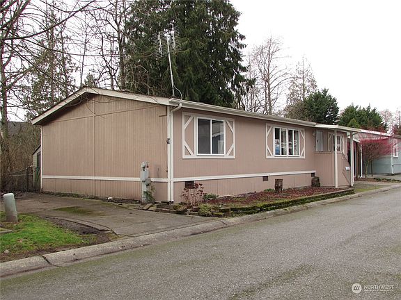 2nd chance for you in this comfortable home minutes to Hwy 99 or I5. Big kitchen has lovely updates and stainless steel appliances. Kitchen island is perfect for extra prep and storage below. Laundry room comes with full size washer and dryer. Large primary bedroom has its own bath and walk-in closet. New carpet in all three bedrooms. Big covered back deck is open to the forest for bird and squirrel watching, and cool shade during the summer months. Two huge storage sheds have space for all your holiday decorations and shop equipment too. The fully fenced backyard keeps your dogs in. Pets are welcome in this park unless "dangerous breed." Home is professionally cleaned and ready for you to move in!