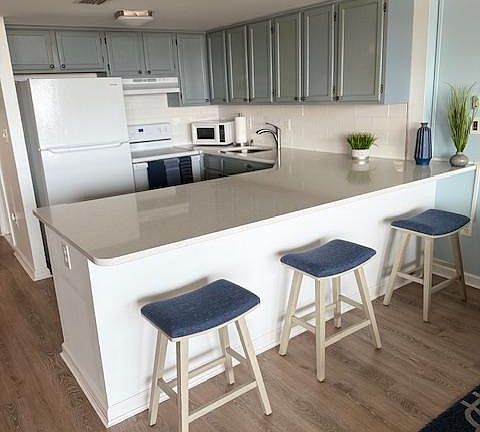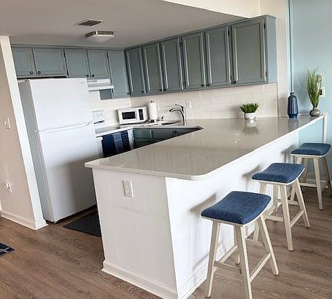 Spacious, updated 2-bedroom, 2-bath condo featuring remodeled kitchen with quartz counters, and stylish bathrooms. Enjoy a private primary suite balcony, full-length oceanfront balcony, plus a bayside balcony for sunsets—rare in Ocean City! Building offers a game room, gym, remodeled lobby, on-site management, oceanfront deck with beach access, and plans for a new pool. Prime 111th Street location near shopping, dining, and entertainment