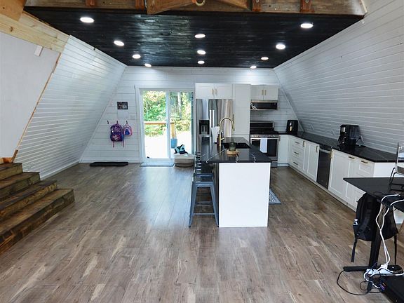 One of a kind A-frame with modern charm! Welcome to this truly unique property where character meets modern convenience. Originally built as an A-frame, this home has been thoughtfully expanded with an addition that brings both charm and an open-concept flow. With 3 bedrooms and 3 full bathrooms, every space has been designed to feel warm, functional, and inviting. Step inside to find a gorgeous kitchen with a spacious eat-in island open to the main living area, perfect for gatherings and everyday living. The large master suite is a true retreat, featuring a walk-in closet and a stunning pass-through bathroom equipped with a jack and jill sink and large walk in shower that connects directly to the laundry room. The second bedroom also includes its own walk-in closet and attached bathroom, while the third bedroom on the main floor is complemented by a separate full bath. The main level also offers an unfinished second family room, as well as an upper loft above the kitchen, providing a blank canvas ready for your finishing touches to make this home truly complete. Outside, you’ll enjoy a large deck leading to an above-ground pool, a fenced-in area for pets, and a spacious yard with endless possibilities. The oversized 2-car garage with epoxy flooring and a heat source is ideal for hobbies and projects. A second detached garage offers more storage. This home is full of unique features, modern updates, and timeless charm, all coming together to create a space that’s as functional as it is beautiful. Don’t miss your chance to own this truly one-of-a-kind property!