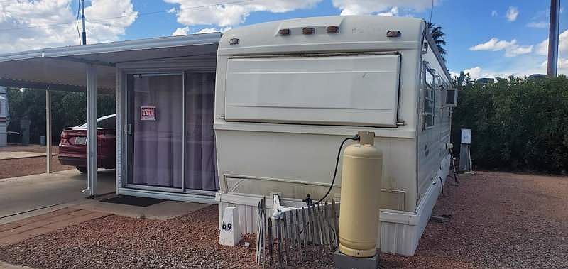 Affordable living in a park model at beautiful Superstition Shadows. This home includes shed and all seasons room perfect for company or extra living area. Full size fridge include as well as dinning room table, couch, recliner. Make an appointment to see this home it wont last long.